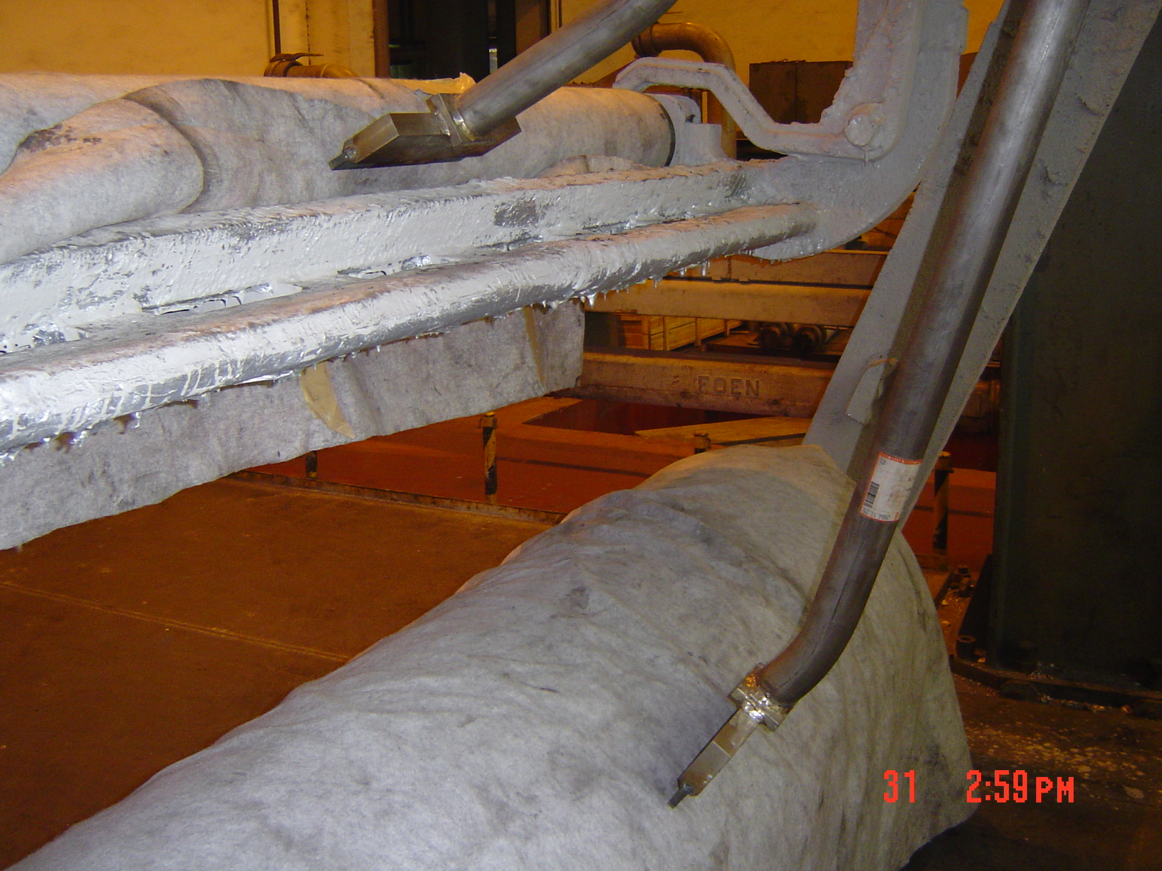 ◎熱風爐,HIMEC(高強度燃燒金屬)型熱風爐完全由金屬構成,應用燃氣渦輪燃燒器技術,實現了燃燒室可達20--100MJ/m2/h的高負荷小型化設計。并且,燃燒室內壁由很薄的空氣膜來冷卻,使燃燒室的壁溫可以常時保持在500°C以下。